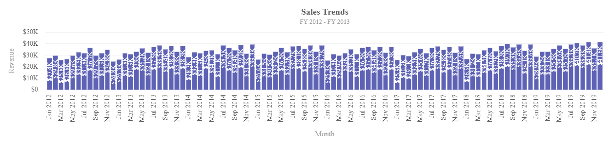 While you can easily export the current view of a scroll chart, exporting the entire chart can prove to be a hassle. Consider a chart with a large dataset represented through a scroll column 2D as shown below.