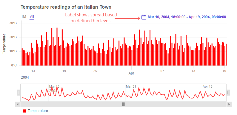 Zoom or pan the following example and notice binning values appearing in the custom range selector: