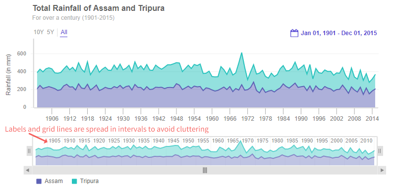 You can pan the active window of the time navigator to view the data of a specific section in greater details in the chart shown above.
