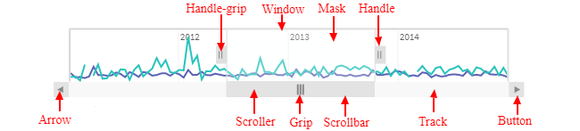 styleobject:handleused to style the handle element of the scroll bar window.handle-gripused to style the handle-grip of the handle element.maskis used to style the mask of the scroll bar window.