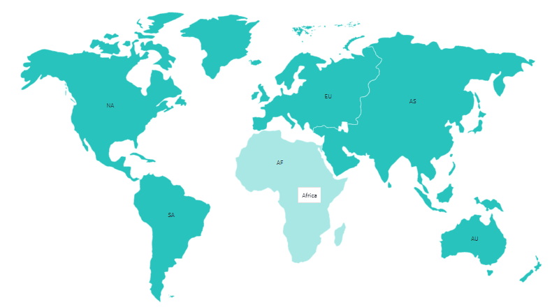 For any map visualization, it is important to provide the correct value for the id keys. For example, if you want to denote Africa, the value for the corresponding id must be AF and not AFR.