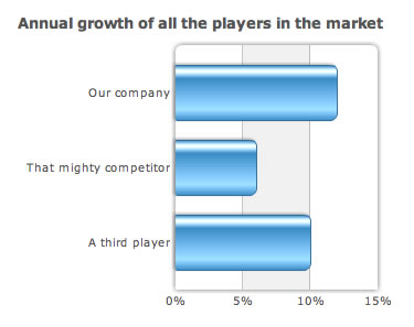 This is one of the most commonly used tricks throughout the industry. If your company only grew from $1M to $1.12M in annual revenue after all the hard work put in by everyone while that mighty competitor soared from $500 million to $530 million, you need to pick the heavy-duty armor…percentages. Show your boss how you had a healthy 12% growth in revenue while your competitor recorded only a small 6% growth.