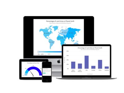 Below are four simple steps that you need to follow to build a Svelte app with a chart, gauge, and map. We’ll display the percentage of land area for each continent, taking the data from enchantedlearning.com. As an example, the chart, gauge, and map appear as seen below. They are displayed one after the other within the rendered app.