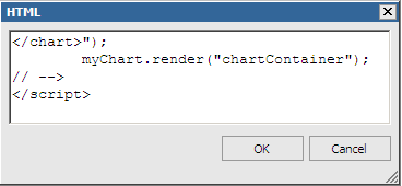 Drag another HTML item to the right, description is Chart End, and paste from "</chart>" to </script>