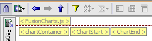 FusionCharts allow authors to embed the source XML directly into the page. This will allow Cognos authors to use HTML Objects to programmatically generate the expected XML. To start, drag an HTML object to the Page Header. Paste in the reference to the FusionCharts.js file:<script type="text/javascript" src=".. /FusionCharts/Charts/FusionCharts.js"></script>