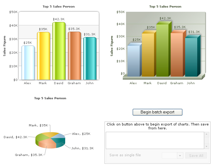 Please Note: Starting FusionCharts XT SR5, JavaScript charts can export the current state of the charts.
