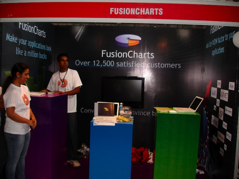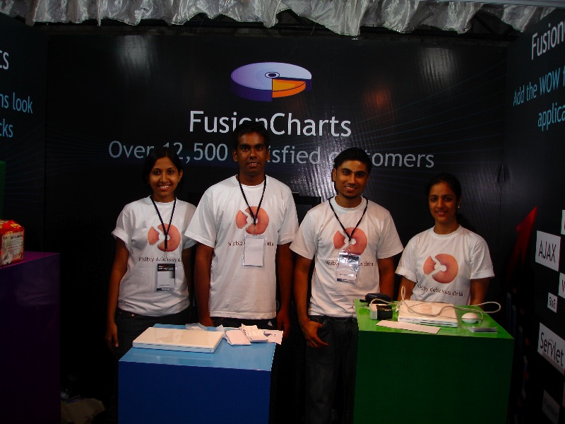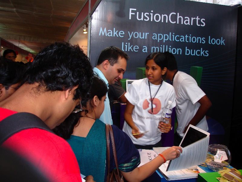 The FusionCharts stall and the demos was an instant hit with the visitors. We also met some of our existing clients from Bangalore. And once the contests started rolling out there was no stopping the fun and the goodies. One of the contests was called ‘Make a chart Get a cookie‘ where hundreds of visitors saw how beautiful flash charts can be made in a wink and got rewarded in delicious Australian cookies.