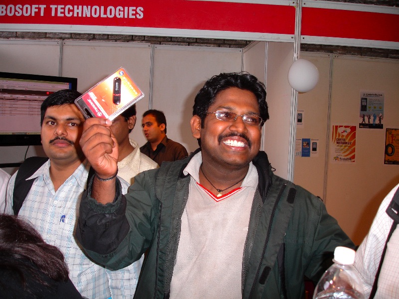 Then we had ‘Write a Slogan Win a Pen Drive‘ contest where the winners went home with a free flash drive. Like the winner Ganesh (picture below) who went home ecstatic with the pen drive he won!