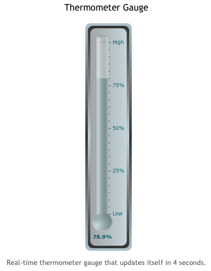 Like the Flash version, the gauges support real-time update that allow them to fetch new data from server automatically at pre-configured intervals. This is useful in monitoring applications where you need to show latest values without refreshing the page.