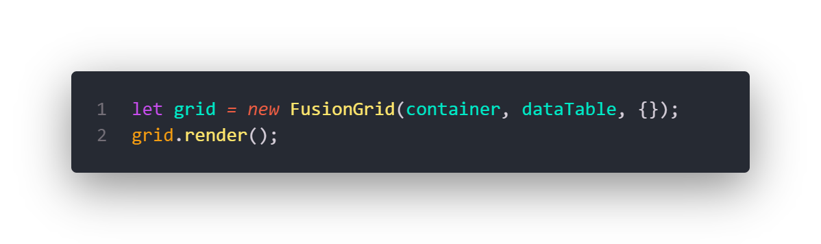 After defining your data and grid, you can render your grid with these two simple lines of code.