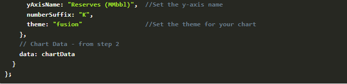 3. Then prepare the data for the type of chart or graph you want to create. For example, to create a column 2D chart showing the “Countries With Most Oil Reserves,” you can represent the data in JSON format: