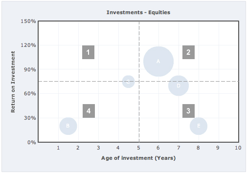 - Quadrant 1 – Best investments: Investments that have given high RoI in a short period of time. What else could you ask for? These investments are like jackpots.