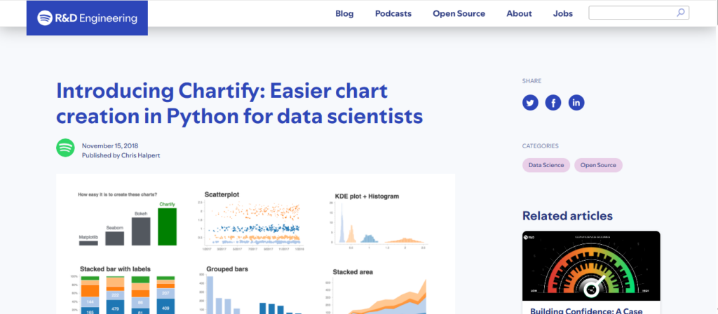 Chartify is an open-source tool that lets you instantly turn your raw data into charts. You can simply drag and drop the file and apply the filter to create the chart within seconds. As an easy pie chart generator, its main emphasis lies on typography, together with spacing and visual harmonization. The system automatically generates the SQL query and shows the chart instantly. Integration with Google Sheets, allowing direct import of data into the graph. However, it lacks interactive features, offers a limited range of chart types, and does not support direct data input.
