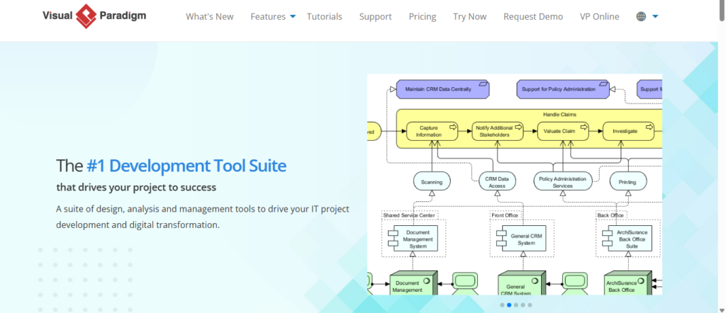 Wide range of modeling tools including UML, BPMN, ERD diagrams, and more.