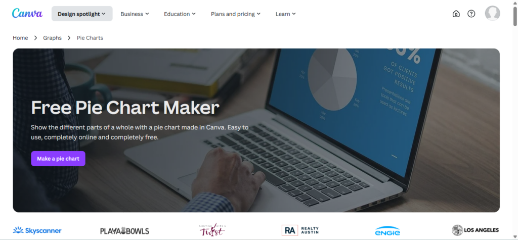 Designhill’s Pie Chart Maker is free to use. You can also use the platform to easily create pie chart visuals for enhanced presentation value.