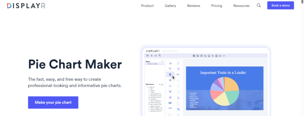 It offers a straightforward process to rapidly create a simple pie chart and get going. This tool is best for you if you’re on a limited time.
