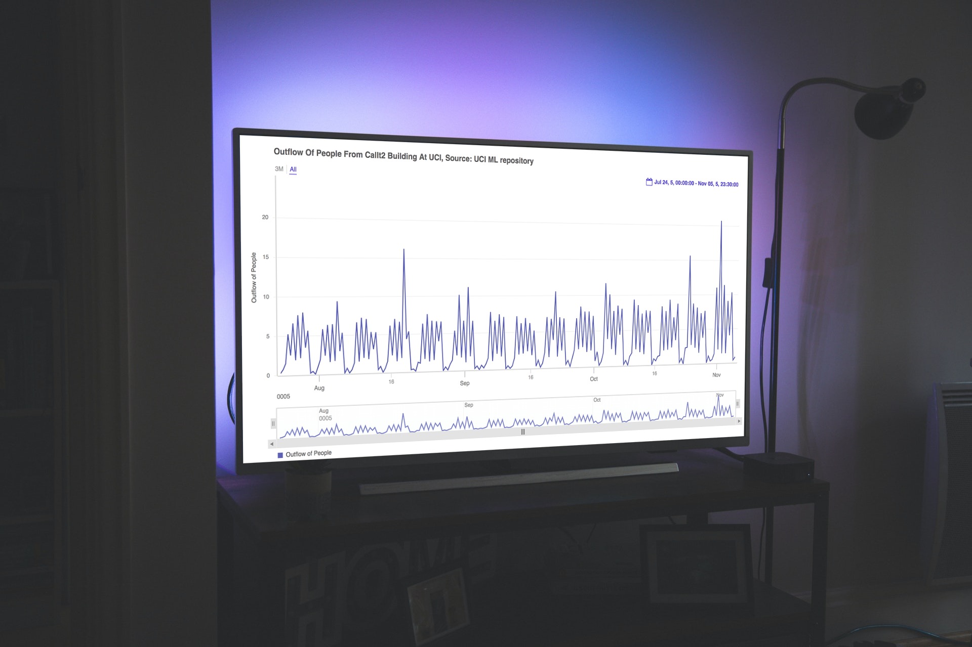 FusionCharts comes with an awesome FusionTime library. The FusionTime library lets you plot and analyze time-series data with its time navigator feature. With the Time Navigator, an analyst can focus on a part of the time series, while keeping the whole long-term data trend in view. In this blog, we’ll build an app for visualizing a time series with the time navigator component. We’ll plot the CalIt2 building people count data set, which shows the volume of people coming in or out of the building. The dataset is from the UCI machine learning repository.