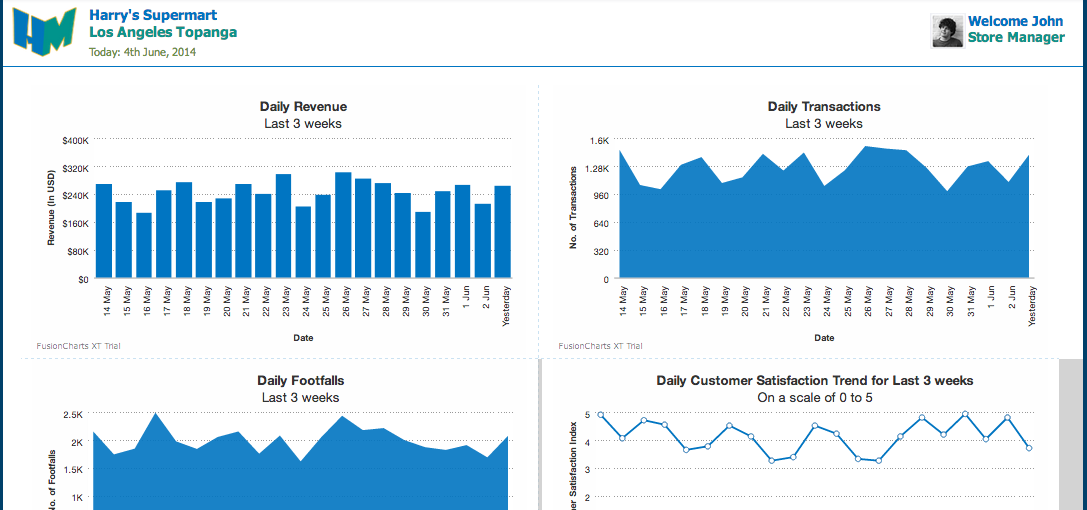 Harry now needs a unified view of all the charts, gauges, and maps that his team has created. This consolidated view of having multiple related charts in a page is called a dashboard. In this section, we will help his team build a complete dashboard.