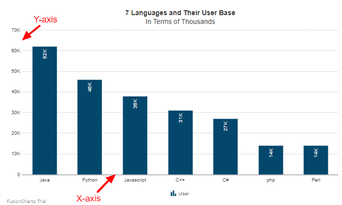 The axes of a chart are the intersecting lines that act as boundaries of the chart canvas and help you estimate the value of a data plot at a glance. Apart from setting the values for the axes, you can also customize the appearance of the axes, as well as that of the values displayed on them.
