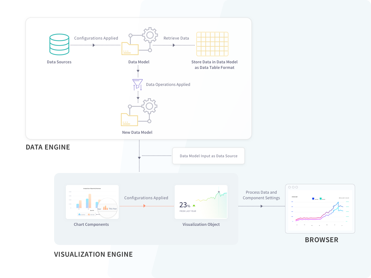 Visualization Engine: The visualization engine of FusionCharts.NET lets you render a chart with functional and cosmetic configurations, after receiving the data from the data engine.