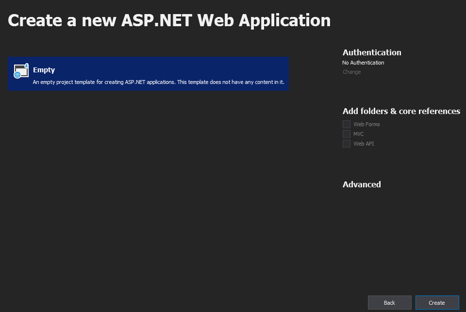 Click on Create a new Project → ASP.NET Web Application (.NET Framework)