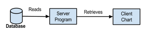 But how do we go about dynamic binding of data? Before we explain that, let us understand how dynamic binding of data works. The data required is stored in an external source which can be a database and is provided to the chart via a server side program as shown in the below diagram: